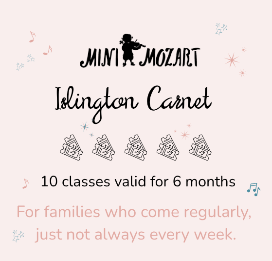 The Mini Mozart Carnet gives you 10 class passes to use over 6 months. It’s ideal for families who come regularly, but don’t need a weekly space held for them. If a guaranteed weekly spot matters to you, we’d recommend a Membership instead.