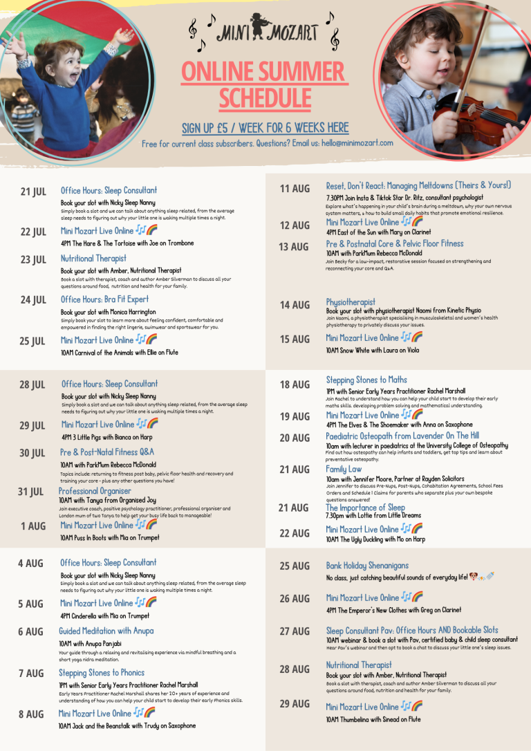 Fri 15th Aug – Mini Mozart Live Online Class at 4pm